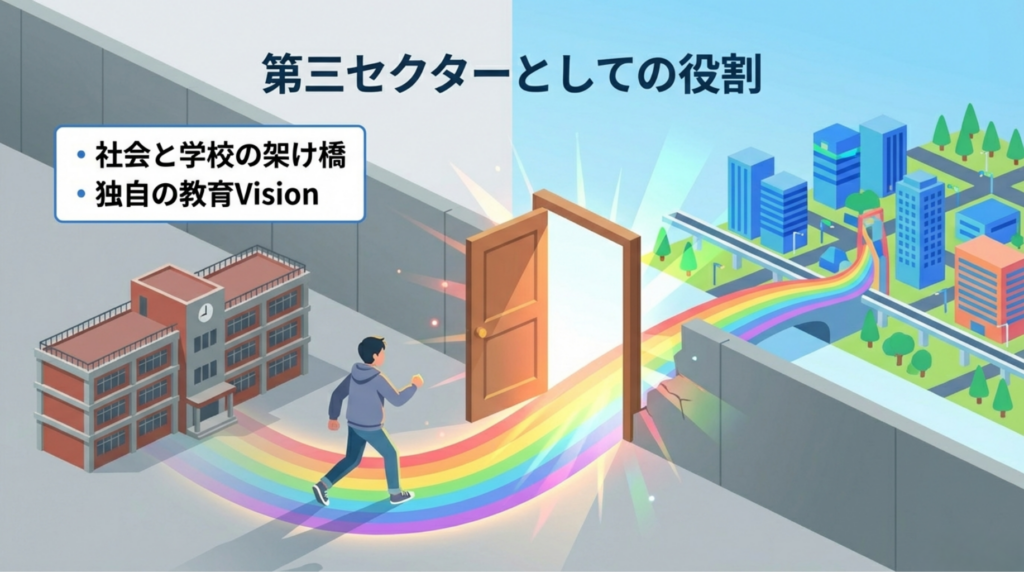 私たちToBiRaは、第三セクター(NPO)として、社会と学校の架け橋になります。独自の教育ビジョンに基づき、子どもたちが多様な大人や本物の社会課題に出会う場を創り出すことで、一人ひとりの「生きる力」を育みます。