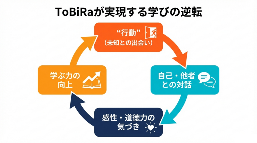 ToBiRaはこのスパイラルを逆転させるため、ミッションである「三つの未知との出会い」を意図的に創出します。