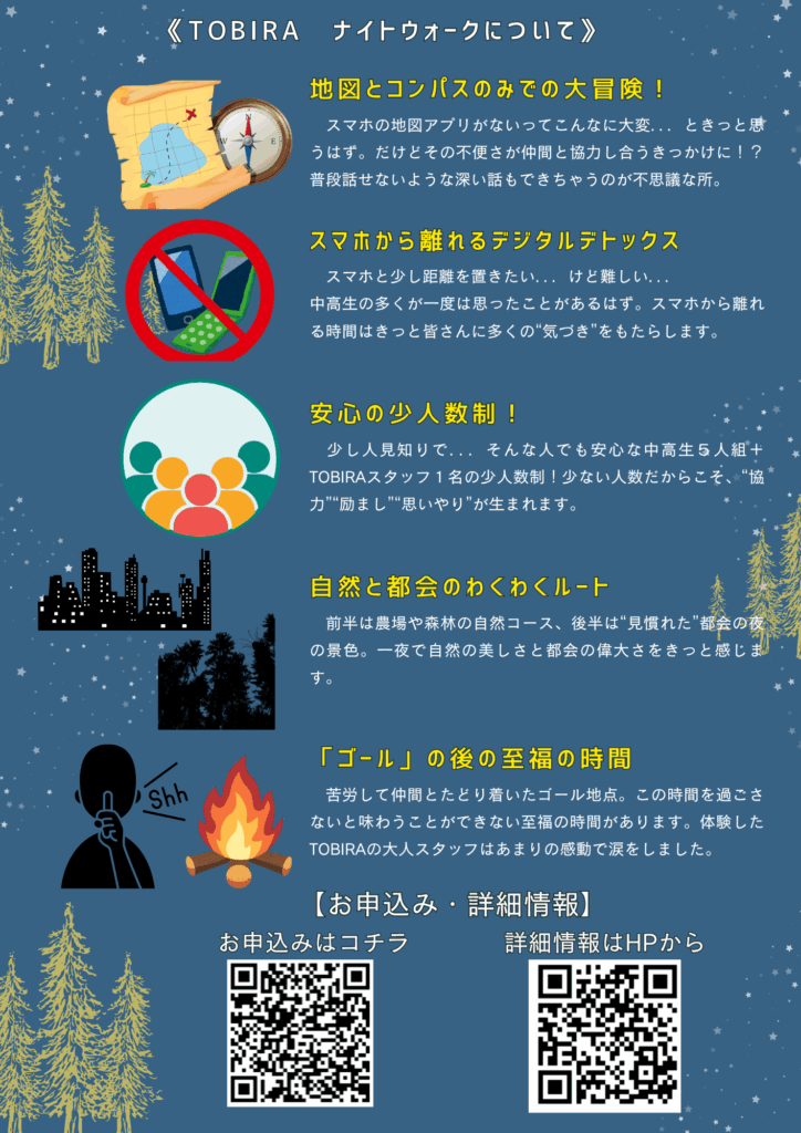 夜の大冒険 ToBiRaナイトウォーク 2025.11.02 Post Share Hatena LINE RSS feedly Pin it note この記事のタイトルとURLをコピーする イベント詳細 体験レポート Post Share Hatena LINE RSS feedly Pin it note この記事のタイトルとURLをコピーする