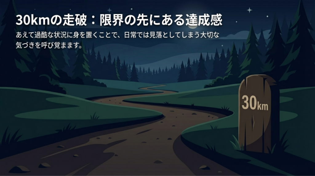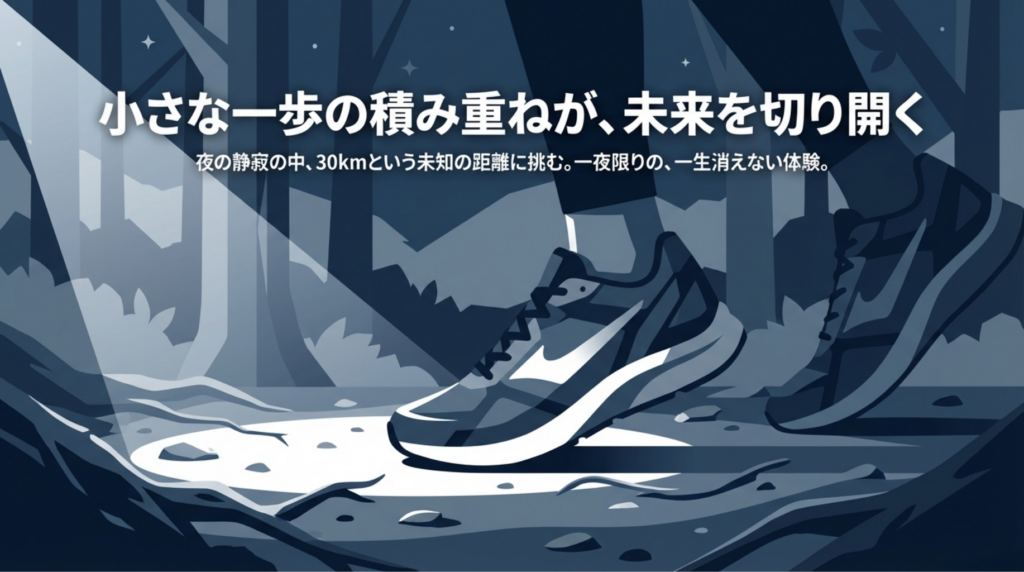 夜の静寂の中、30kmという未知の距離に挑む。それは単なるウォーキングではありません。